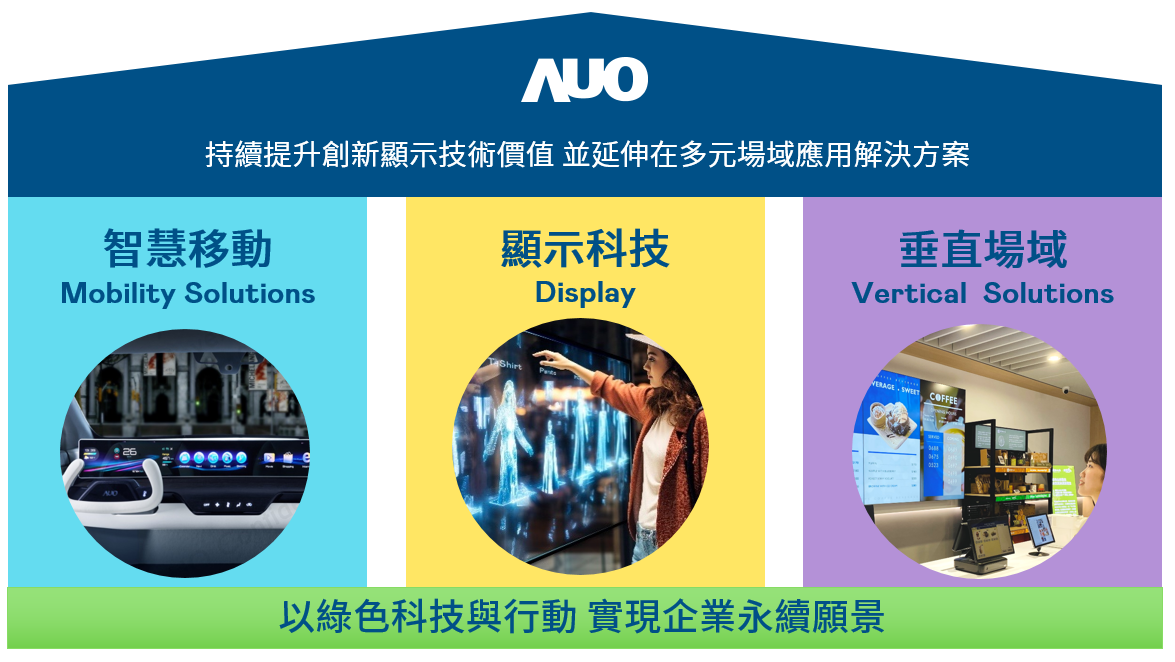 ror体育持續推動「雙軸轉型」,在精進顯示技術附加價值(Go Premium),與深化垂直市場應用(Go Vertical)的策略下,對應ror体育的優勢競爭力與趨勢,ror体育奠定顯示技術、智慧移動、垂直場域三大永續營運支柱,在顯示技術領域的根基之上,延伸布局多元場域應用解決方案。將先進顯示科技助力智慧移動及垂直場域發展,並以綠色科技與行動為實踐,在轉型之路上貫徹永續經營之願景。